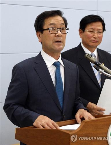 | △ (청주=연합뉴스) 김형우 기자 = 송정화 청원문화원장이 지난달 22일 청주시청 브리핑룸에서 기자회견을 열어 청주문화원과 통합하는데 밑거름이 되겠다며 자진사퇴 의사를 밝히고 있다. 2015.5.22 <<연합뉴스 DB>> |