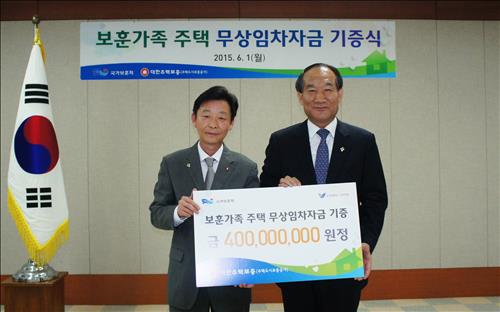 (서울=연합뉴스) 박인영 기자 = 대한주택보증은 6월 호국 보훈의 달을 맞아 형편이 어려운 국가유공자 및 유족의 주거안정을 위해 무주택 국가유공자 주택임차자금 4억원을 국가보훈처에 전달했다고 1일 밝혔다.
