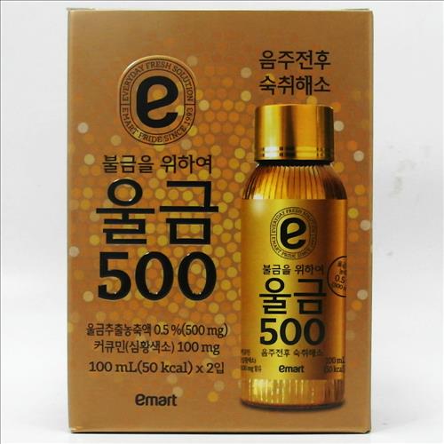 이마트의 PL 숙취해소제 '울금500'은 이날부터 전국 점포에서 판매되며 가격은 3천680원(100㎖*2)이다.
