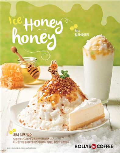 (서울=연합뉴스) 이유미 기자 = 커피전문점 할리스커피는 우유 얼음 위에 100% 국산 아카시아 꿀과 더블치즈케익을 올린 '허니치즈빙수'(1만1천500원)를 출시했다고 2일 밝혔다.