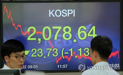 이날 코스피는 전날보다 23.73포인트(1.13%) 내린 2,078.64로 마감했다.
