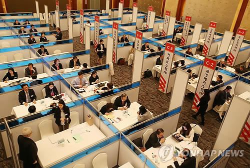 | △ 대사·총영사 139명, 수출기업 해외진출 컨설팅 (서울=연합뉴스) 한종찬 기자 = 2일 오후 서울 소공동 롯데호텔에서 열린 '재외공관장 초청 1:1 상담회'에서 기업인들과 공관장들이 상담을 하고 있다. 한국무역협회를 비롯한 경제 5단체와 외교부가 공동 주최한 이번 상담회에는 세계 각국에서 활동하는 대사와 총영사 등 재외 공관장 139명이 참석해 250여개 기업과 670여건의 상담을 진행했다. 2015.4.2 saba@yna.co.kr |