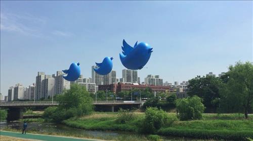 (서울=연합뉴스) 윤보람 기자 = 트위터 상징인 파랑새 모형의 대형 풍선이 국내 도심에 등장했다.