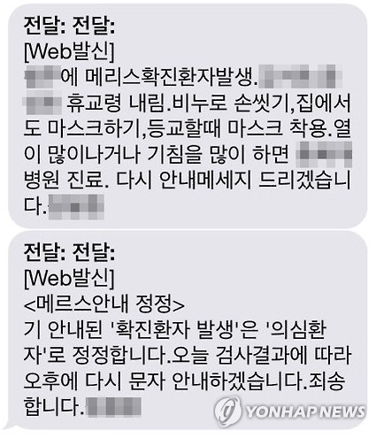 학교가 '메르스 괴담' 문자발송…정정문자도 '무개념'(종합)