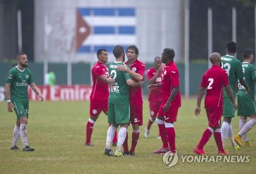 미국의 프로 축구단인 뉴욕 코스모스와 쿠바 대표팀은 2일(현지시간) 쿠바 아바나의 페드로 마레로 스타디움에서 친선경기를 펼쳤다.