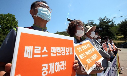 | △ 메르스 대책 촉구 기자회견 (수원=연합뉴스) 신영근 기자 = 3일 오전 경기도 수원 경기도청 앞에서 민주노총 경기도본부 주최로 '메르스 확산 방지 및 도민 안전을 위한 경기도의 특별 대책 촉구 기자회견' 이 열려 참가자들이 메르스 관련 정보 공개 등을 촉구하고 있다. 2015.6.3 drops@yna.co.kr http://blog.yonhapnews.co.kr/geenang |