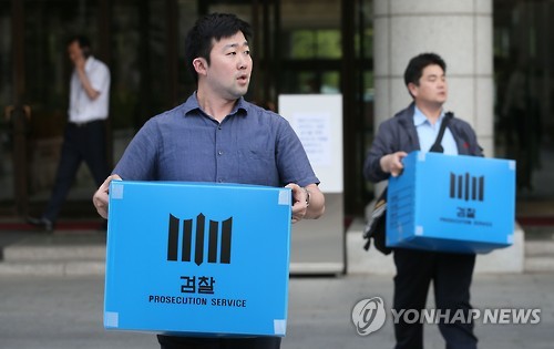 | △ 검찰, 산업은행 본점 압수수색 (서울=연합뉴스) 박지호 기자 = 포스코의 성진지오텍 지분 고가 매수 의혹과 관련해 산업은행에 대한 압수수색에 나선 서울중앙지검 특수2부 관계자들이 3일 오후 서울 여의도 산업은행에서 관련 증거물이 들어있는 박스를 들고 나오고 있다. |