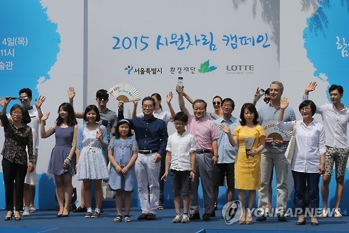 오전 10시20분부터 40분간 박원순 서울시장과 최열 환경재단 대표, 길정우 국회의원, 승효상 건축가, 이원준 롯데백화점 대표 등 150여명이 시원차림 패션쇼 무대에 오른다.