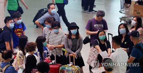 | △ 영종도 인천국제공항을 통해 한국을 찾은 관광객들이 마스크를 착용하고 있다. (연합뉴스 자료사진) |