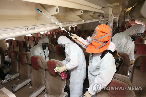 아시아나항공은 3일 심야 시간대에 여객기 5대를 소독했고 하루 평균 8대∼12대씩 일주일 동안 특별 기내 방역 작업을 벌인다.
