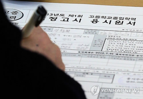 | △ 검정고시 응시자가 원서작성하고 있다. (연합뉴스 자료사진) |