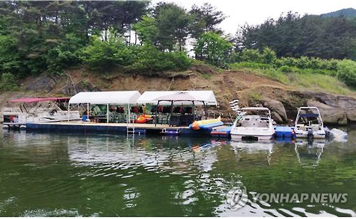 | △ 대청호에 들어선 불법계류시설 (옥천=연합뉴스) 박병기 기자 = 충북 옥천군 군북면의 대청호에 들어선 불법계류시설. 옥천군은 최근 일제단속에 나서 7곳의 불법계류시설을 적발해 경찰에 고발하고 이들의 불법레저영업에 대한 수사를 의뢰했다고 4일 밝혔다.2015.6.4 bgipark@yna.co.kr |