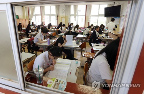 | △ 대학수학능력시험 모의고사 (서울=연합뉴스) 최재구 기자 = 대학수학능력시험 모의고사가 치러진 4일 서울 종로구 안국동 풍문여자고등학교에서 학생들이 시험을 준비하고 있다. |