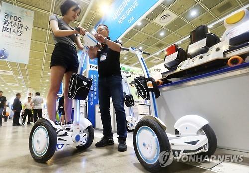 최근 공원이나 한강변, 자전거 도로에서 볼 수 있는 친환경 전동휠 제품들도 전시됐다.