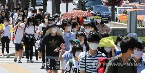 | △ 메르스 예방을 위해 (서울=연합뉴스) 안정원 기자 = 3일 오전 경기도 한 중학교 학생들이 마스크를 착용한 채 서울 종로구 주한일본대사관 앞에서 열린 수요집회에 참석하기 위해 세종대로를 지나고 있다.2015.6.3 jeong@yna.co.kr |