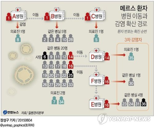 복지부는 "사망자는 천식, 세균성 폐렴을 앓고 있었으며 발열과 호흡곤란 증상으로 지난 9일부터 ⓔ의료기관에 입원해 치료 중 지난 28일부터 30일까지 16번(40), 23번(73), 24번(78) 환자와 같은 병실에 있었다"고 말했다.