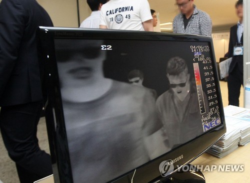 | △ 채용설명회장에 열감지 카메라 등장 (전주=연합뉴스) 최영수 기자 = 중동호흡기증후군(메르스)이 확산 추세를 보이자 4일 오후 전북 전주대학교에서 열린 혁신도시 이전기관 합동채용설명회장 앞에 열감지 카메라가 설치되어 있다. 2015.6.4 kan@yna.co.kr |