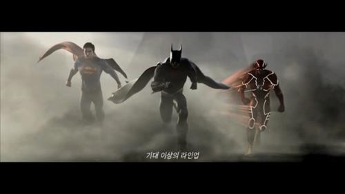 광고 내용을 보면 도망치던 여주인공이 도움을 요청하자 '기대 이상의 라인업'이라는 문구와 함께 배트맨과 슈퍼맨, 플래쉬맨 등 3명의 히어로가 달려온다.