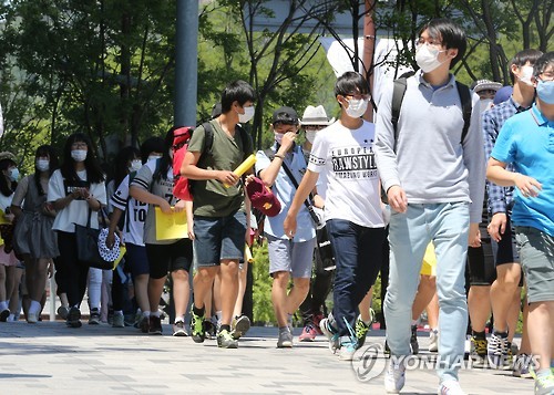 | △ 메르스가 만들어낸 마스크 행렬 (서울=연합뉴스) 안정원 기자 = 지난 3일 오전 경기도 한 중학교 학생들이 마스크를 착용한 채 서울 종로구 주한일본대사관 앞에서 열린 수요집회에 참석하기 위해 세종대로를 지나고 있다. |