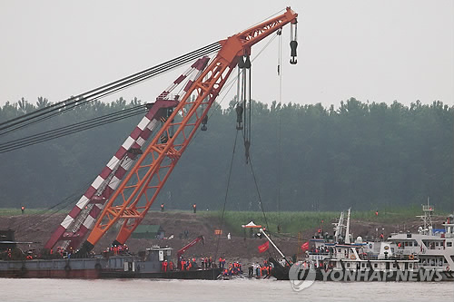 | △ 지난 1일 발생한 중국 양쯔(揚子)강 유람선 침몰사고에 대한 구조작전이 5일째로 접어든 가운데 중국당국이 "생존자가 존재할 가능성은 없다고 본다"고 밝혔다. (AP=연합뉴스) |