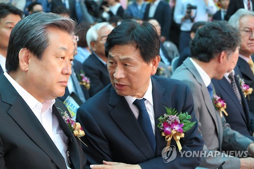 | △ 대형선망 출어식에 참석한 김무성 대표 (부산=연합뉴스) 5일 오전 부산공동어시장에서 열린 대형선망 조합의 초출어식에 참석한 김무성 새누리당 대표가 유재중 의원과 말을 나누며 심각한 표정을 짓고 있다. |