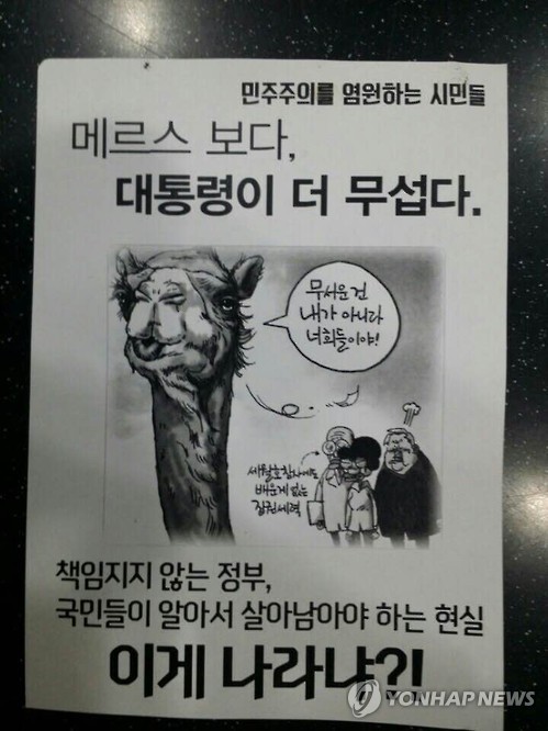 전단에는 중동호흡기증후군(메르스) 확산과 최근 미군 오산기지 탄저균 반입 사건과 관련해 박 대통령을 비판하는 내용이 담겼다.
