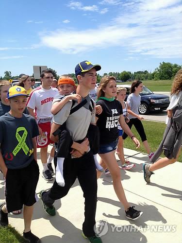 (댈러스=연합뉴스) 장현구 특파원 = 미국 미시간 주에 사는 15세 소년이 5일(현지시간) 뇌성마비에 걸린 동생을 업고 91㎞ 행군을 시작했다.