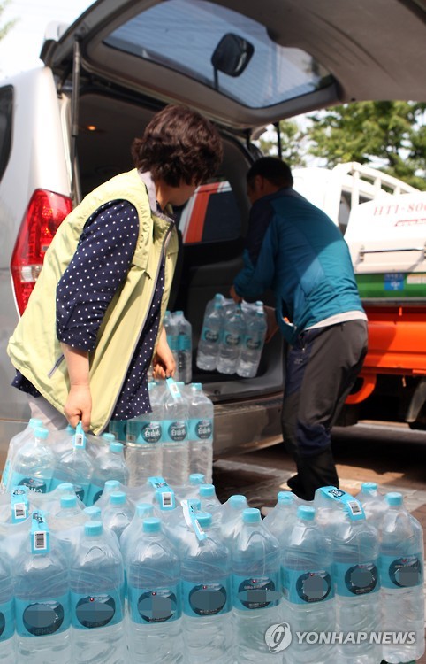 | △ 생필품 싣는 보건소 직원들 (화성=연합뉴스) 류수현 기자 = 6일 화성시가 중동호흡기증후군(메르스)로 자택 격리자들의 집을 방문해 생수, 휴지, 라면, 쌀 등 2주분의 생필품을 전달했다. 메르스로 인한 자가격리 대상자 116명 중 홀로 거주하는 27명이 이날 물품 지급 대상이다. 화성시 보건소 직원들이 자가격리자들에게 지급될 물품들을 차에 싣고 있다. 2015.6.6 you@yna.co.kr |