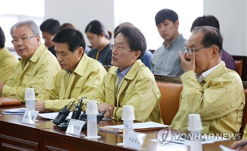 | △ 모두발언하는 조희연 (서울=연합뉴스) 한종찬 기자 = 조희연 서울시 교육감(오른쪽 두번째)이 7일 오후 서울 종로구 서울시교육청 중동호흡기증후군(메르스) 대책본부에서 열린 긴급대책회의에 참석해 모두발언을 하고 있다. 2015.6.7 saba@yna.co.kr |