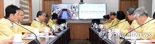 | △ 이재정 교육감 메르스 대책회의 (수원=연합뉴스) 이재정 경기도교육감이 7일 오후 남부청사 화상 회의실에서 열린 중동호흡기증후군(메르스) 관련 대책회의를 주재하고 있다. 2015.6.7 <<경기교육청 제공>> young86@yna.co.kr |