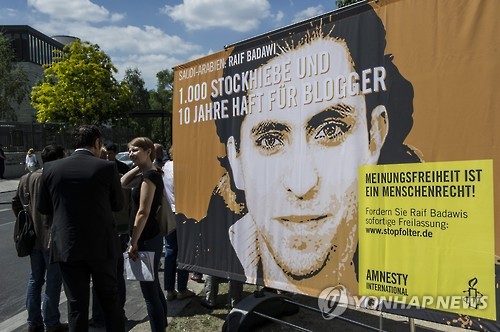 바다위는 이슬람교 예언자 모하마드와 고위 성직자를 조롱하는 웹사이트를 만들어 이슬람을 배교했다는 혐의로 기소돼 지난해 5월 태형 1천대와 징역 10년, 100만 사우디리얄(약 3억원)의 벌금형을 받았다.