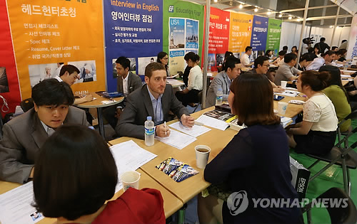 | △ 해외취업박람회에서 구직자들이 관련업체에서 상담을 하고 있다.(연합뉴스 자료사진) |