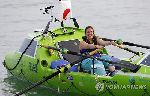 (조시<일본> AP=연합뉴스) 미국의 20대 여성이 하루 16시간까지 혼자 노를 저어 태평양을 횡단하겠다는 도전장을 던졌다.