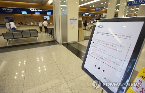 | △ 한산한 병원 (서울=연합뉴스) 김도훈 기자 = 8일 오후 서울 광진구 건국대병원 로비가 한산한 모습을 보이고 있다. 중앙메르스대책본부는 건국대병원에 입원 중 중동호흡기증후군(메르스) 확진 판정을 받은 76번 환자와 관련, 건국대 병원에 오기 전 거친 강동경희대병원의 239명과 건국대병원의 147명을 각각 이 환자와의 밀접접촉자로 보고 격리 관찰 중이라고 밝혔다. 2015.6.8 superdoo82@yna.co.kr |