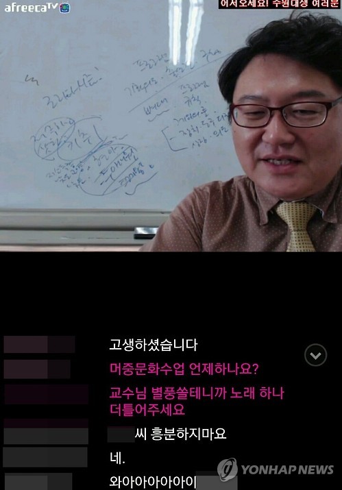 이날 김씨의 아프리카TV 수업을 들은 일부 학생들이 수업 영상을 캡처, 트위터 등 소셜네트워크서비스(SNS)에 소개하면서 화제가 되기도 했다.