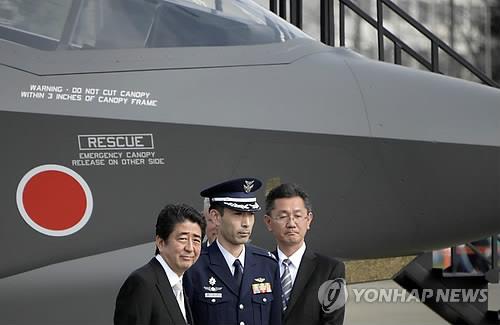 | △ 자위대 창설 60주년 행사에 참석한 아베 신조(왼쪽 첫번째) 일본 총리(EPA=연합뉴스 자료사진) |