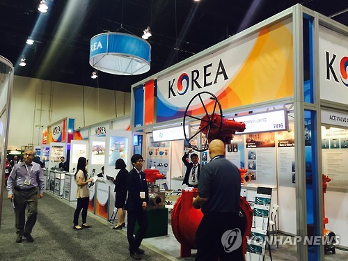 | △ (밴쿠버=연합뉴스) 조재용 통신원 = 9일(현지시간) 캐나다 캘거리에서 개막된 제25회 국제석유전시회에서 12개 한국 기업이 참가해 운용 중인 한국관에 현지 업계 관계자의 발길이 이어지고 있다. 2015.6.10 <<코트라 밴쿠버무역관>> jaeycho@yna.co.kr |