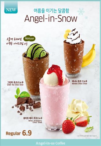 (서울=연합뉴스) 이도연 기자 = 커피전문점 엔제리너스커피는 창립 15주년을 기념해 '초코 스노우' 3종과 '아이스 디저트' 3종 등 여름 신제품 6종을 출시했다고 10일 밝혔다.