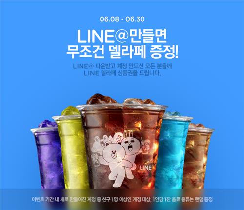 라인은 이달 말까지 라인앳 계정을 개설해 1명 이상의 친구를 확보한 모든 이용자를 대상으로 델라페 음료 쿠폰을 증정하는 이벤트를 진행한다.