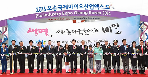 | △ 지난해 9월 오송생명과학단지에서 열린 국제바이오산업엑스포 개막식 장면.(연합뉴스 자료사진.충북도 제공) |