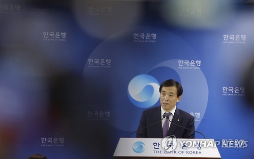 | △ Governor of the Bank of Korea Lee Ju-yeol answers a reporter's question during a press conference on the benchmark interest rate at the bank's headquarters in Seoul, South Korea, Thursday, June 11, 2015. South Korea's central bank lowered its key interest rate to a historic low on Thursday, responding to a slump in exports and the prospect that the outbreak of the deadly MERS virus could slow the economy. (AP Photo/Lee Jin-man) |