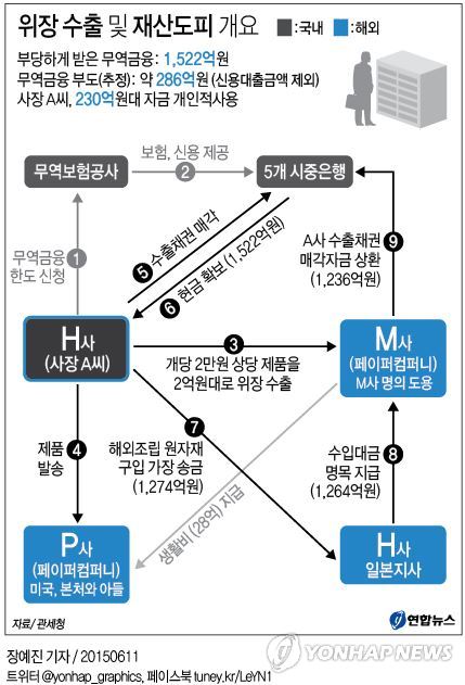 조씨는 물품을 일본의 거래처로 보내는 것처럼 서류를 꾸몄으나 실제는 미국에 설립한 페이퍼컴퍼니의 빈 사무실로 보내 쌓아놓았다가 폐기처분했다.