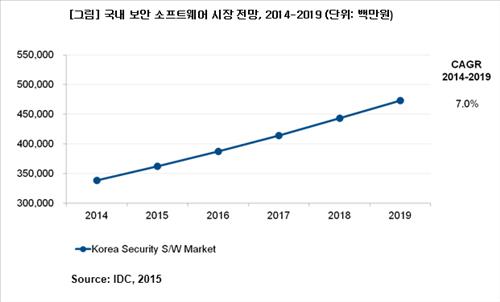 (서울=연합뉴스) 윤보람 기자 = 국내 보안 소프트웨어 시장 규모가 올해 약 3천억원에 이르며 앞으로 5년간 연평균 7% 성장할 것이라는 전망이 나왔다.