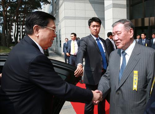 중국의 권력 서열 3위인 장 위원장은 이날 오전 왕천 전인대 상무위원회 부위원장 및 추궈홍 주한 중국대사 등 중국 정부 인사 40여명과 함께 서울 양재동 현대차그룹 본사를 방문했다.