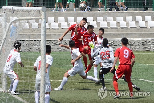 | △ 보천보횃불상 체육경기대회 (평양 조선중앙통신=연합뉴스) 보천보횃불상 체육경기대회에서 축구 경기를 벌이는 북한 선수들. 2015.6.4 photo@yna.co.kr |
