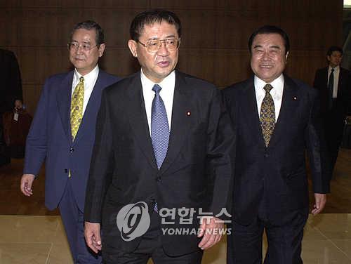 | △ 2001년 자민당 간사장 시절의 야마사키 다쿠(가운데) |