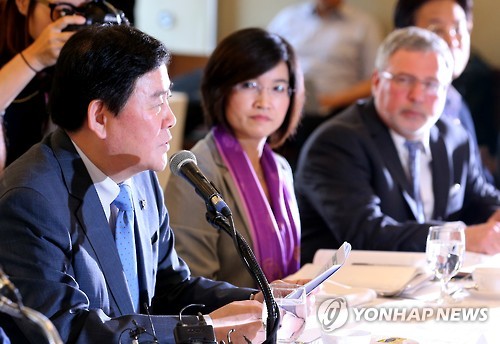 | △ 메르스로 경기 부진이 악화하면서 적극적인 재정정책을 요구하는 목소리가 높아지고 있다. 최경환 국무총리 대행이 지난 12일 서울외신기자클럽에서 주요국 대사 등을 초청해 메르스 확산 방지를 위한 정부 대책과 입장을 설명하고 있다. |