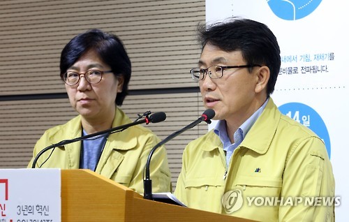 | △ 메르스 관련 질문에 답하는 권덕철 총괄반장 (세종=연합뉴스) 배재만 기자 = 권덕철 중앙메르스관리대책본부 총괄반장이 14일 오전 정부세종청사 보건복지부 공용브리핑룸에서 열린 중동호흡기증후군(메르스) 정례 브리핑에서 기자들의 질문에 답하고 있다. 왼쪽은 정은경 현장점검반장. 2015.6.14 scoop@yna.co.kr http://blog.yonhapnews.co.kr/f6464 |