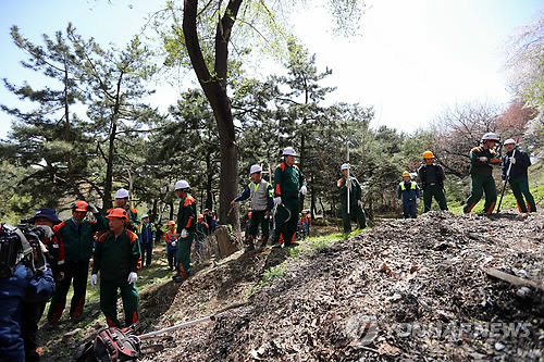 | △ 충북 단양에서 소나무 1그루가 재선충병에 감염된 사실이 확인돼 충북도가 역학조사에 들어갔다. 사진은 지난 4월 서울 남산에서 발견된 재선충병 소나무에 대해 시 당국이 긴급방제 작업을 벌이는 모습. (연합뉴스 자료사진) |