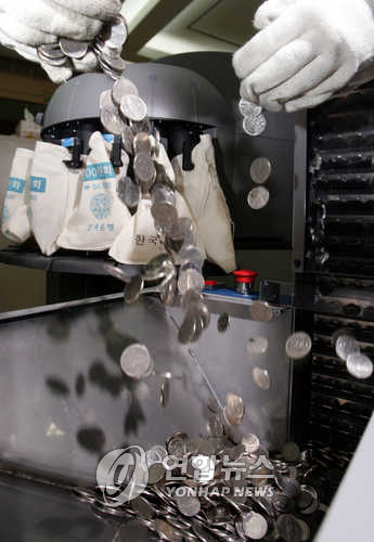 (서울=연합뉴스) 이지헌 기자 = 한국은행은 5월 한 달간 펼친 범국민 동전교환 운동으로 총 2억6천200만 개(362억 원어치)의 동전이 지폐로 교환됐다고 15일 밝혔다.